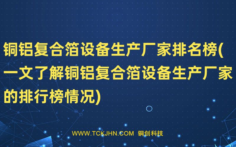 銅鋁復合箔設備作為一種重要的金屬復合材料設備,廣泛應用于電子、冶金、化工等行業,具有良好的導電、導熱性能和良好的耐腐蝕性。在市場上存在著各種品牌和生產廠家,為了更好地選擇合適的產品和廠家,下面將為您介紹一些銅鋁復合箔設備生產廠家的排名榜情況。
