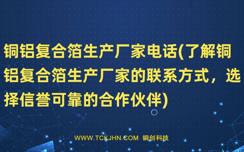 銅鋁復合箔是一種由銅和鋁組成的復合材料,在電子工業、通信、航天航空等領域有著廣泛的應用。由于其良好的導電性和耐腐蝕性能,銅鋁復合箔在電路板、射頻屏蔽和散熱器等領域有著重要的作用。如果您需要銅鋁復合箔,并希望找到可靠的生產廠家,以下是幾個廠家的聯系電話供您參考。