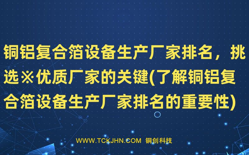 2. 為什么了解銅鋁復合箔設備生產廠家排名很重要