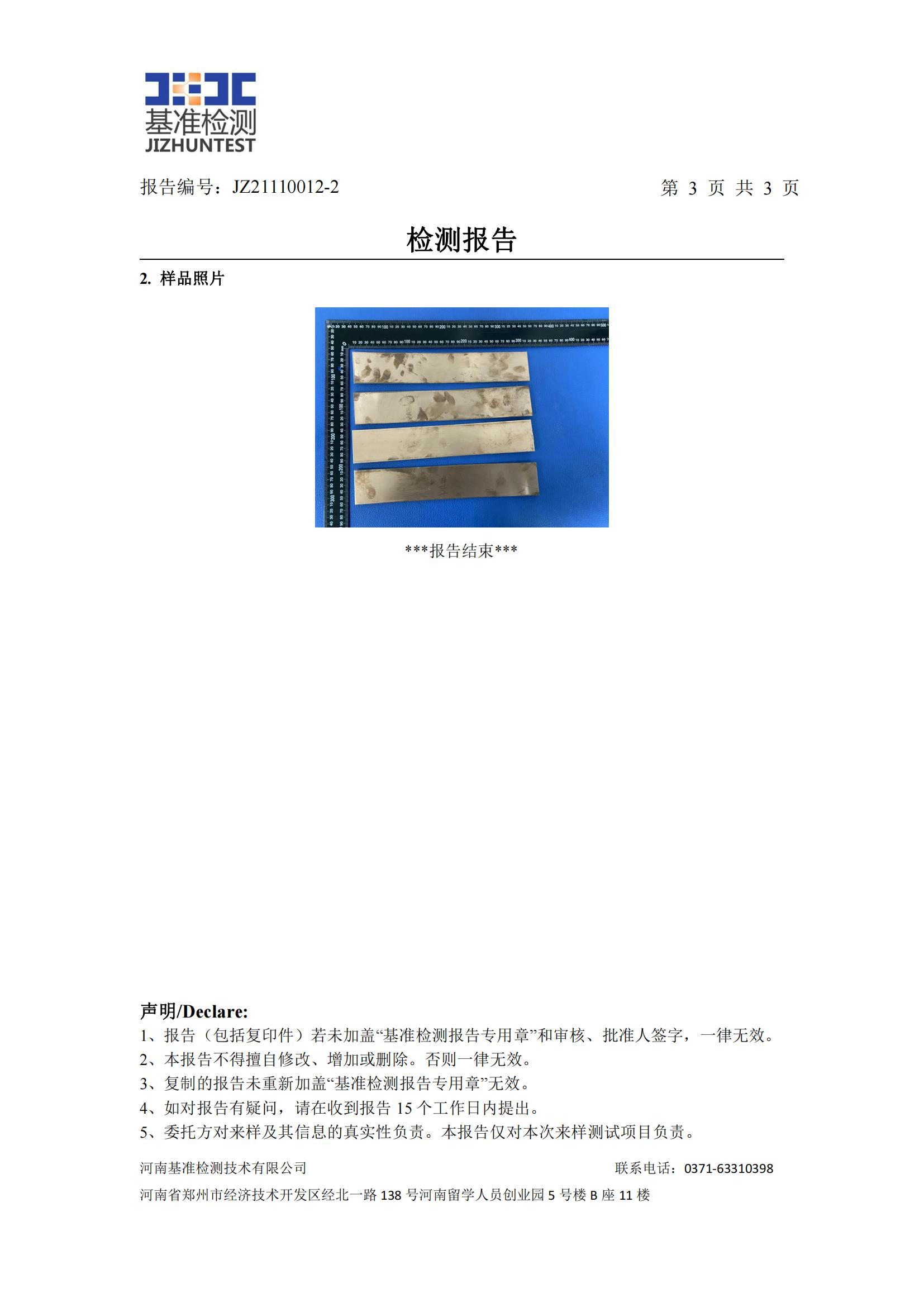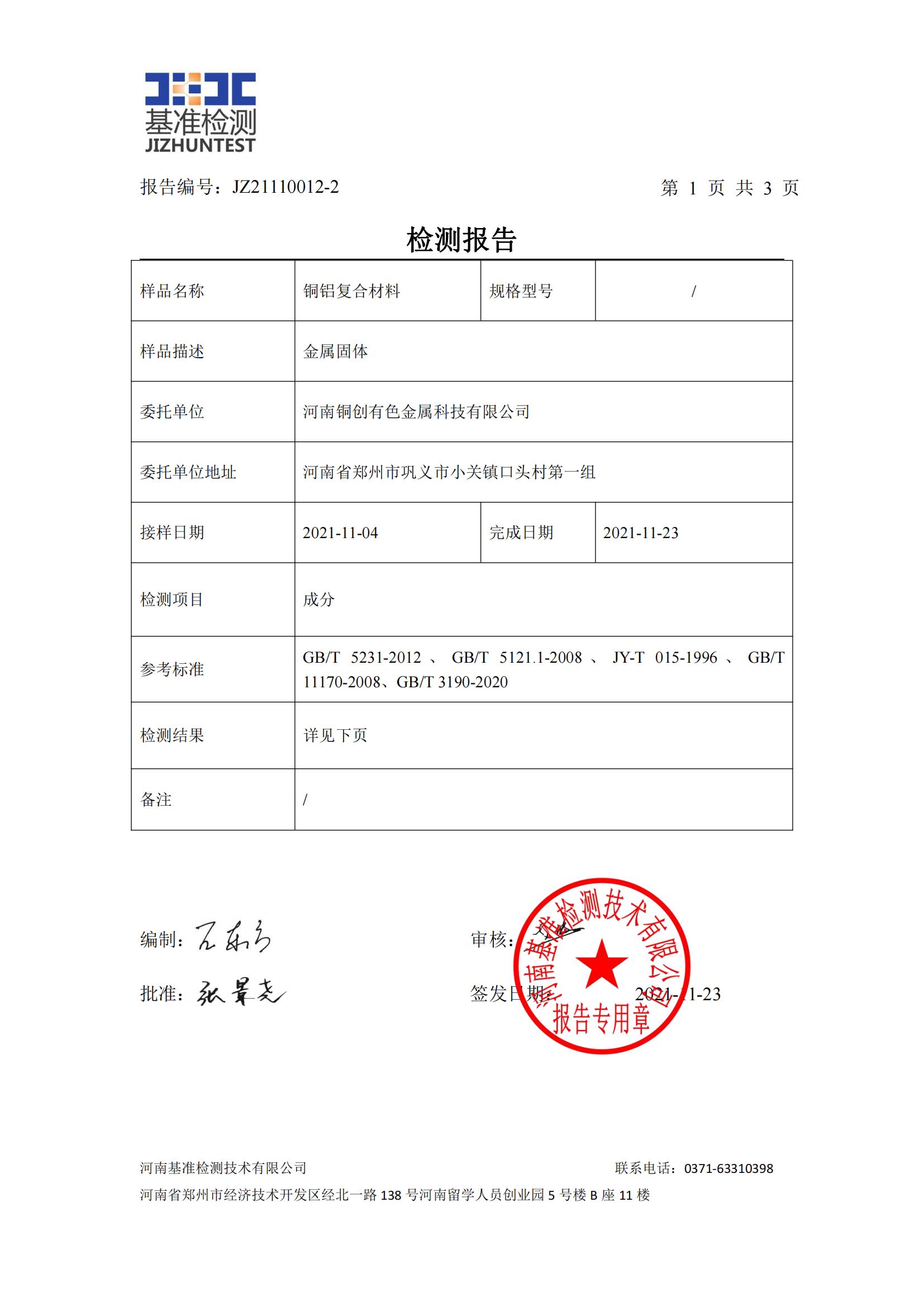 委托單位:河南銅創有色金屬科技有限公司